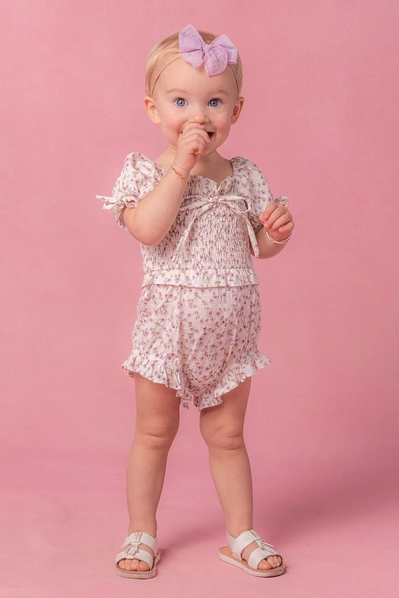 SKU: AXZ5Y 694119405985448224357 Categories: SPRING, Spring Collection Tags: _label_20% off with code: MOTHERSYAY, 021524launch, Baby, Bow-emb, Buttons, Casual, Cream, Floral, Mothersdaysale24, Natural-waist, No-zip, Polyester, Purple, Ruffled-emb, Short-sleeve, Size-0-3m, Size-3-6m, Size-6-9m, Size-9-12m, Smocked-emb, Spring24, Square-neck