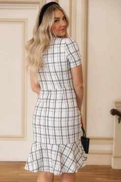 white tweed knee length dress