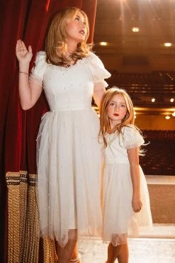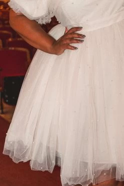cream tulle knee length dress