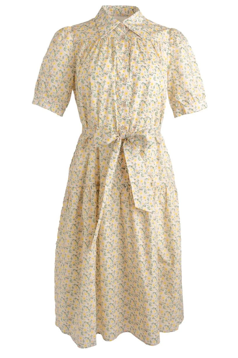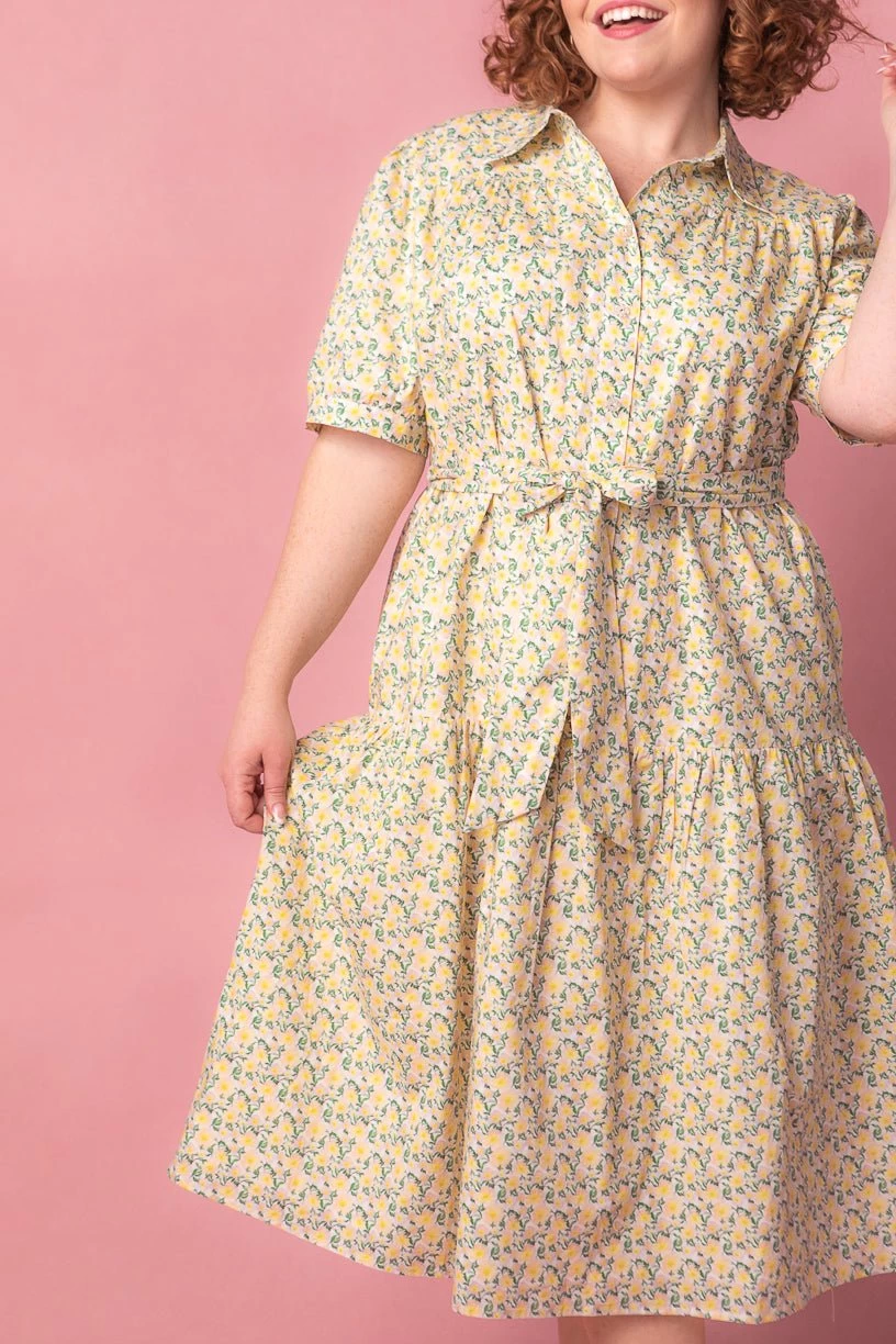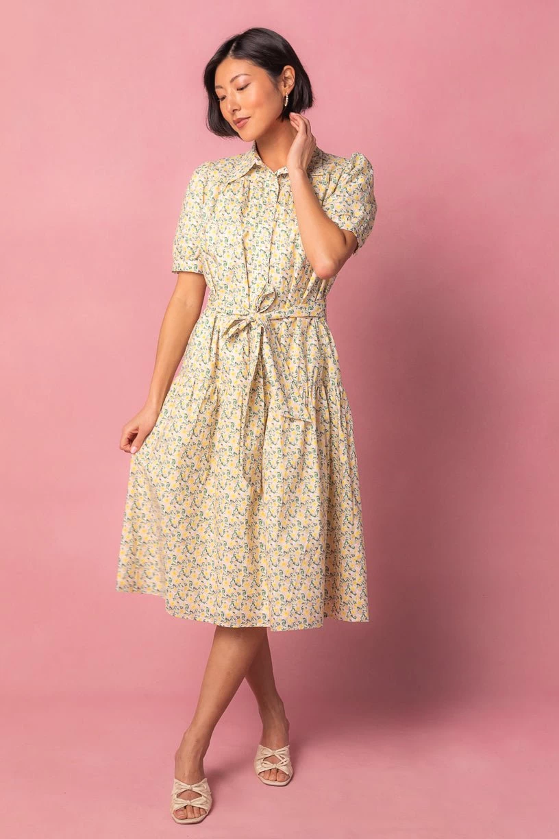 yellow cotton collared midi dress