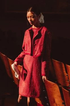 red tweed knee length dress