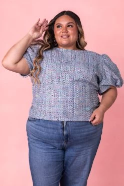 Be the first to review “Roxie Top In Blue Tweed” Cancel reply