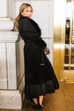 black removable faux fur collar dress coat